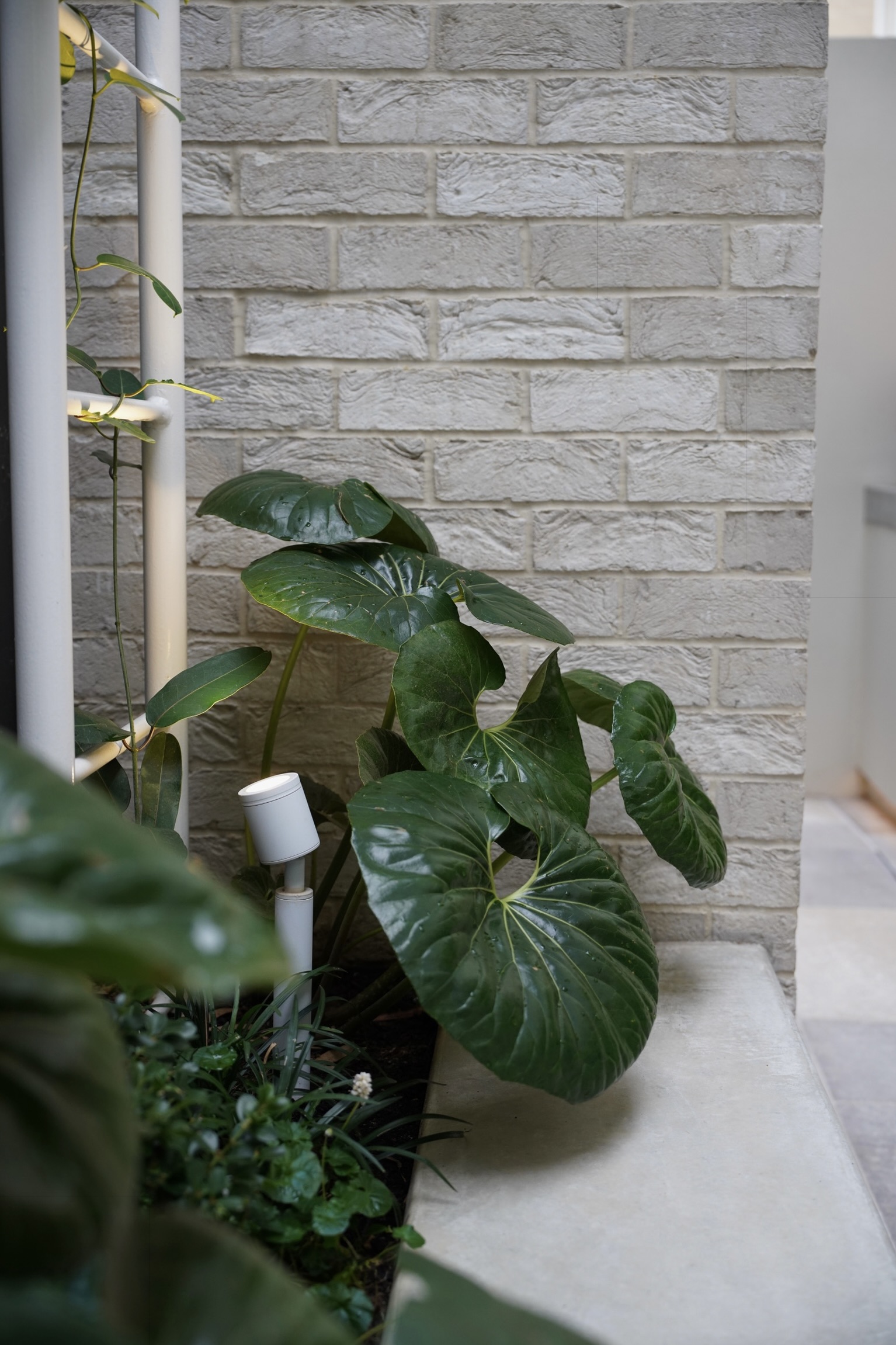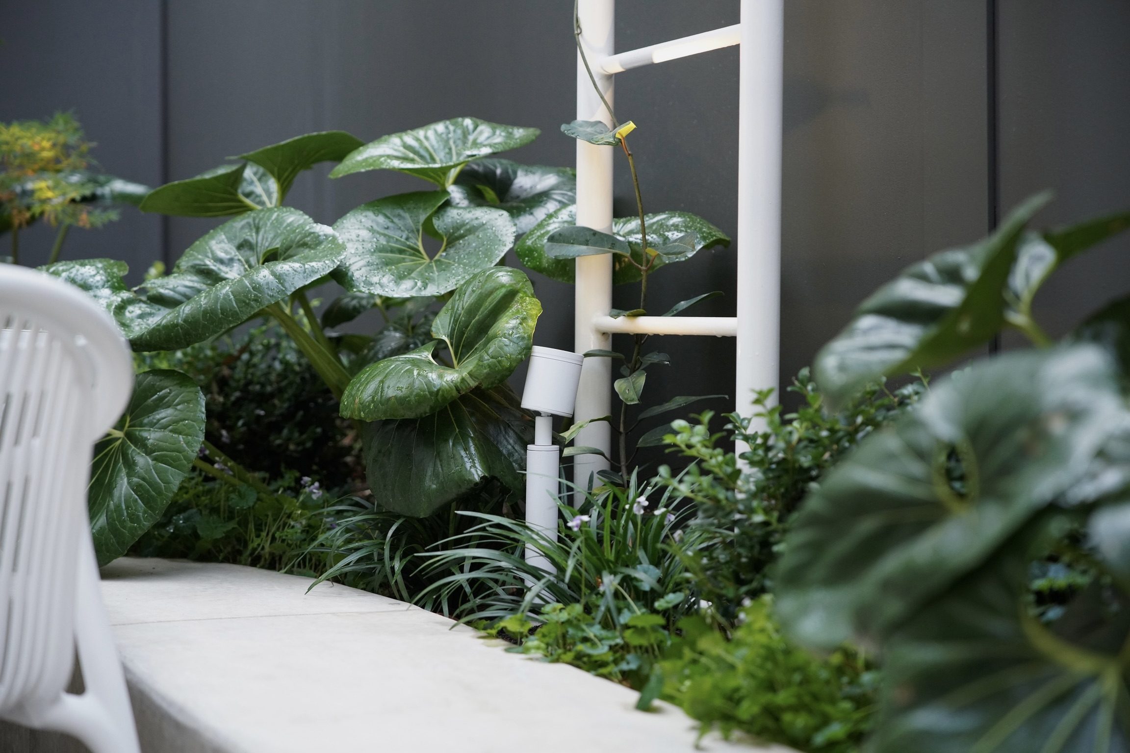 Three custom steel arbors add vertical structure, designed to support Stephanotis floribunda as it grows and settles over time. The garden itself is newly planted, with layers of greenery that will continue to fill out and soften the space as it matures. A custom pizza oven bench creates another focal point, with the copper Polito oven adding warmth and character. Existing elements, including the client’s elk horns, have been thoughtfully retained and incorporated, giving the garden a more personal feel.